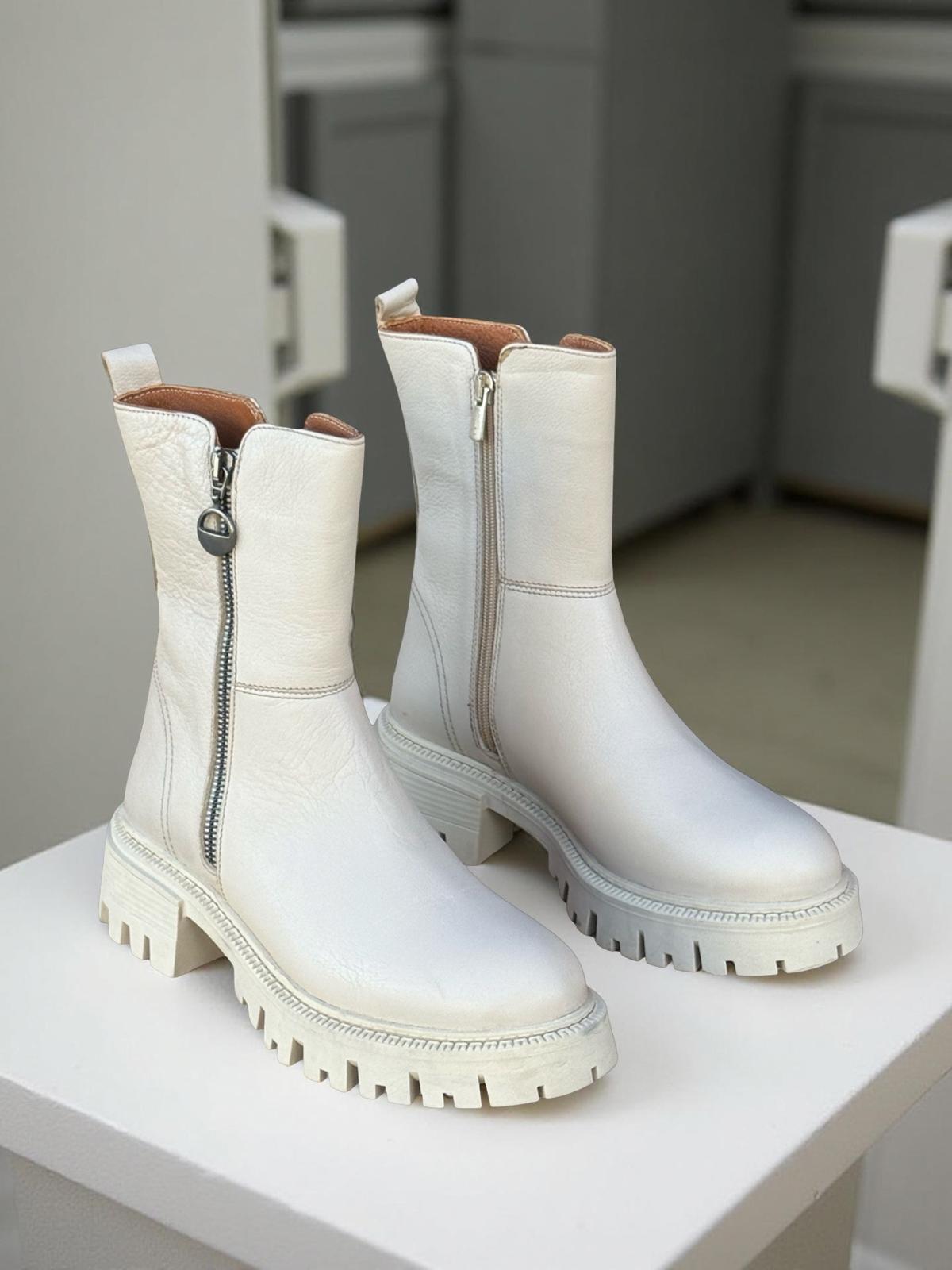 C.Black 23782 Hakiki Deri Kauçuk Taban Kadın Bot Bej