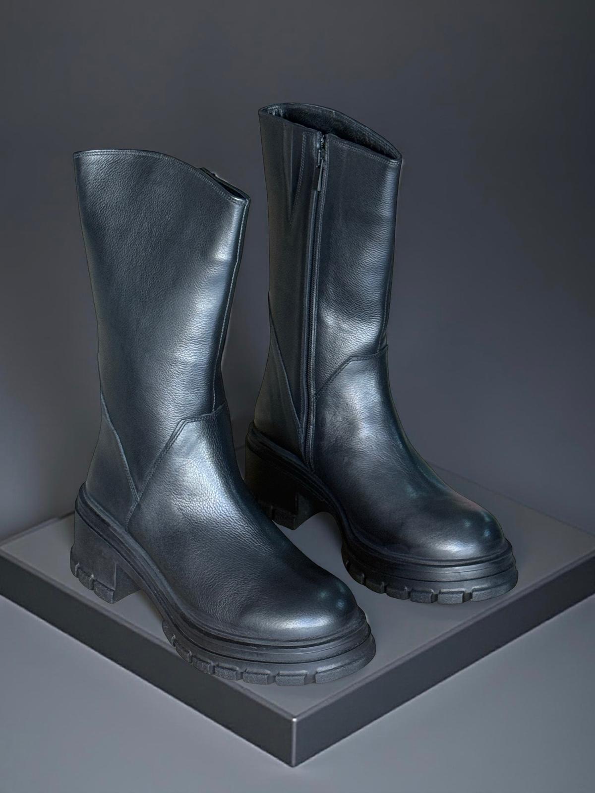 C.Black 52673 Hakiki Deri Kauçuk Taban Kadın Bot Siyah