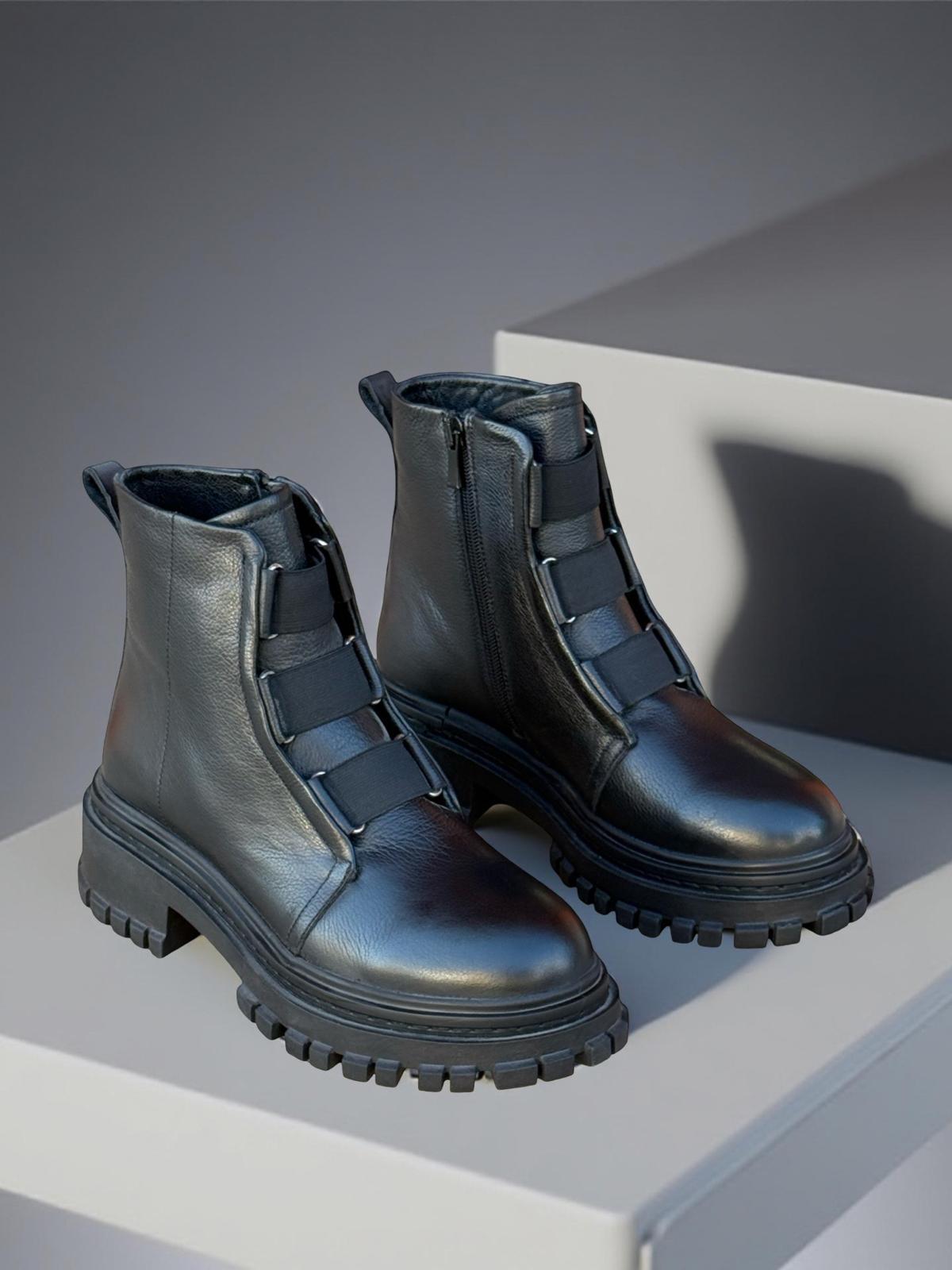 C.Black 66682 Hakiki Deri Kauçuk Taban Kadın Bot Siyah