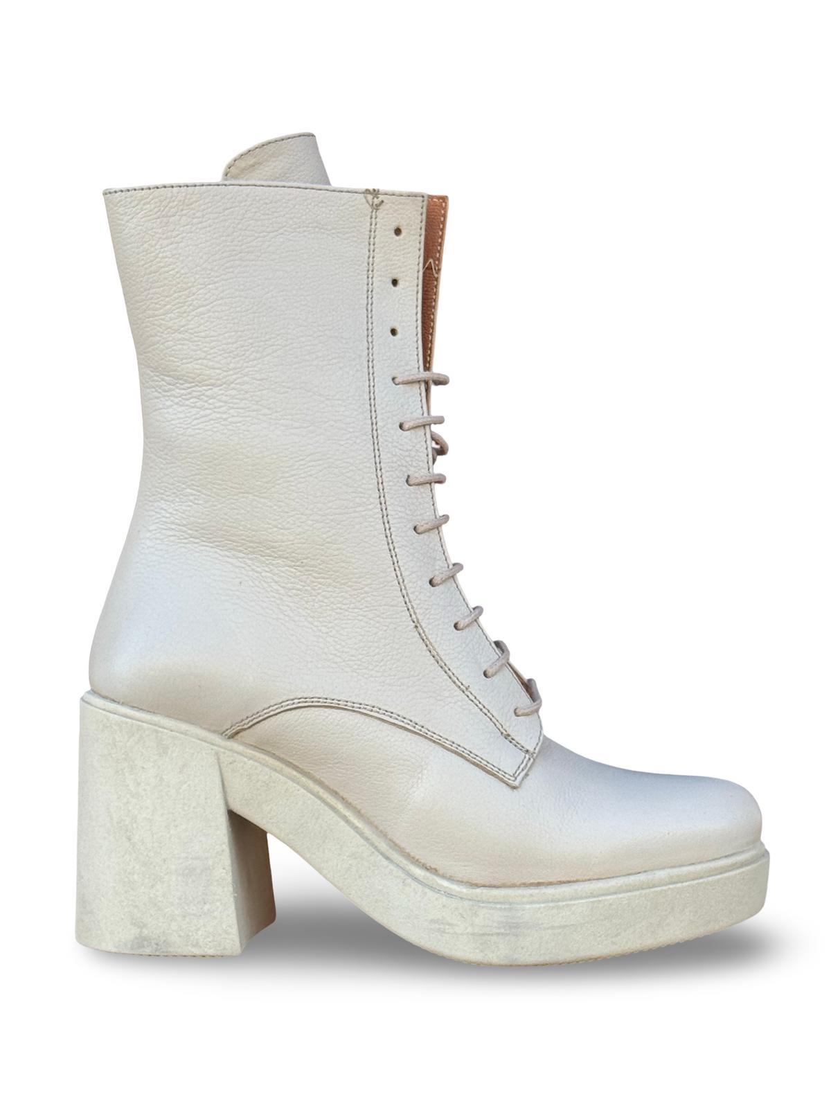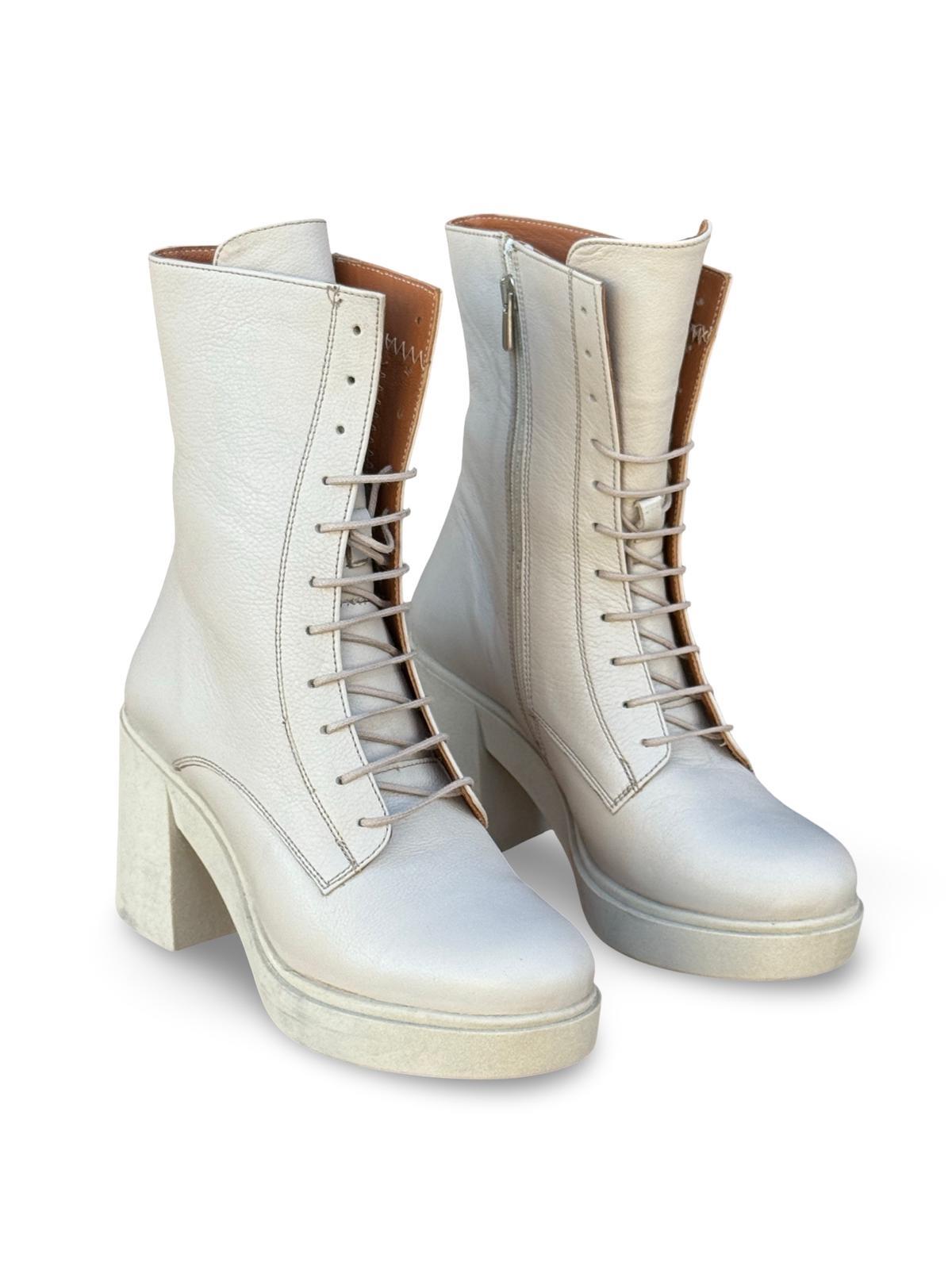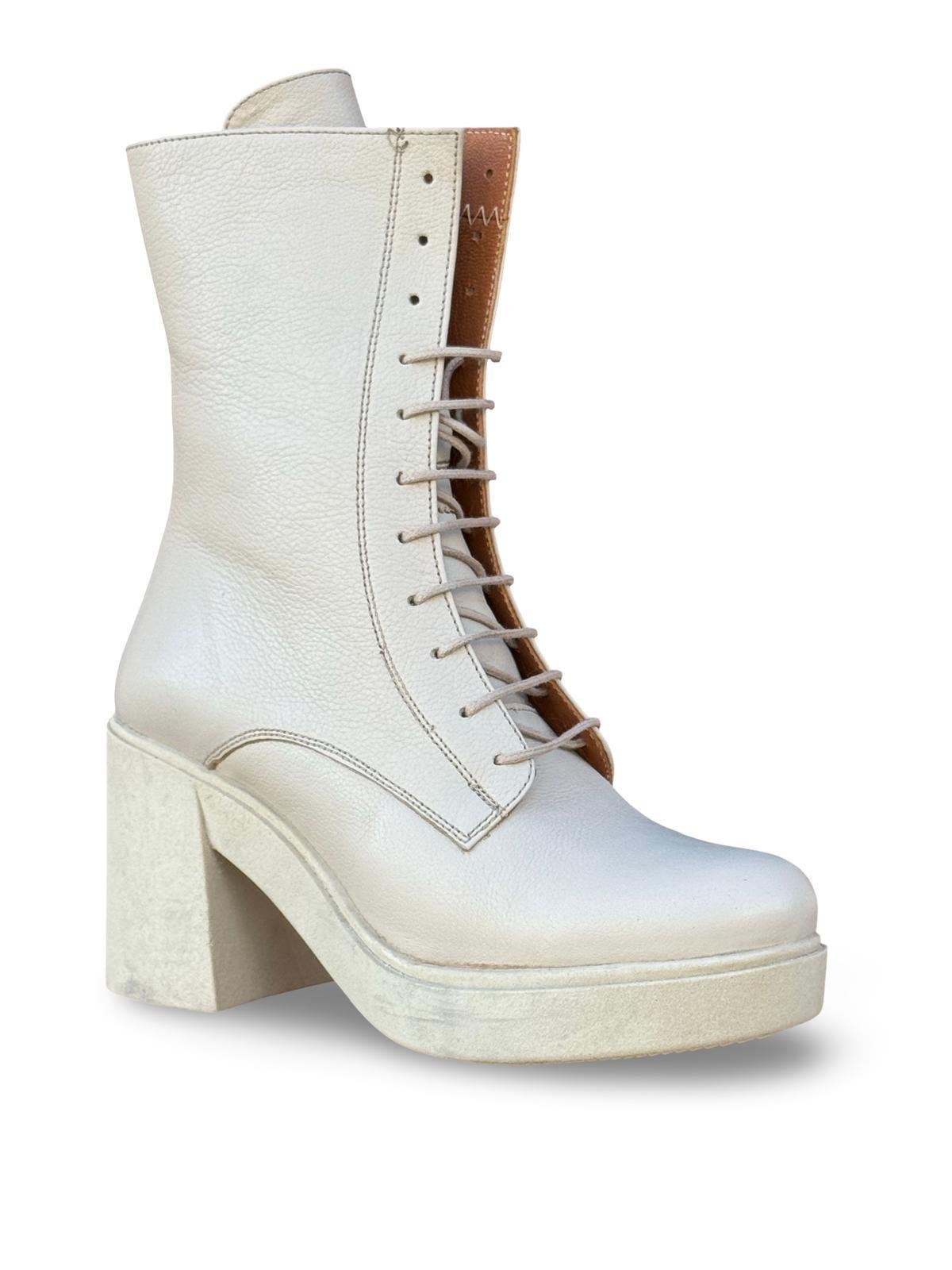 C.Black 83600 Hakiki Deri Kauçuk Taban Kadın Topuklu Postal Bot Bej