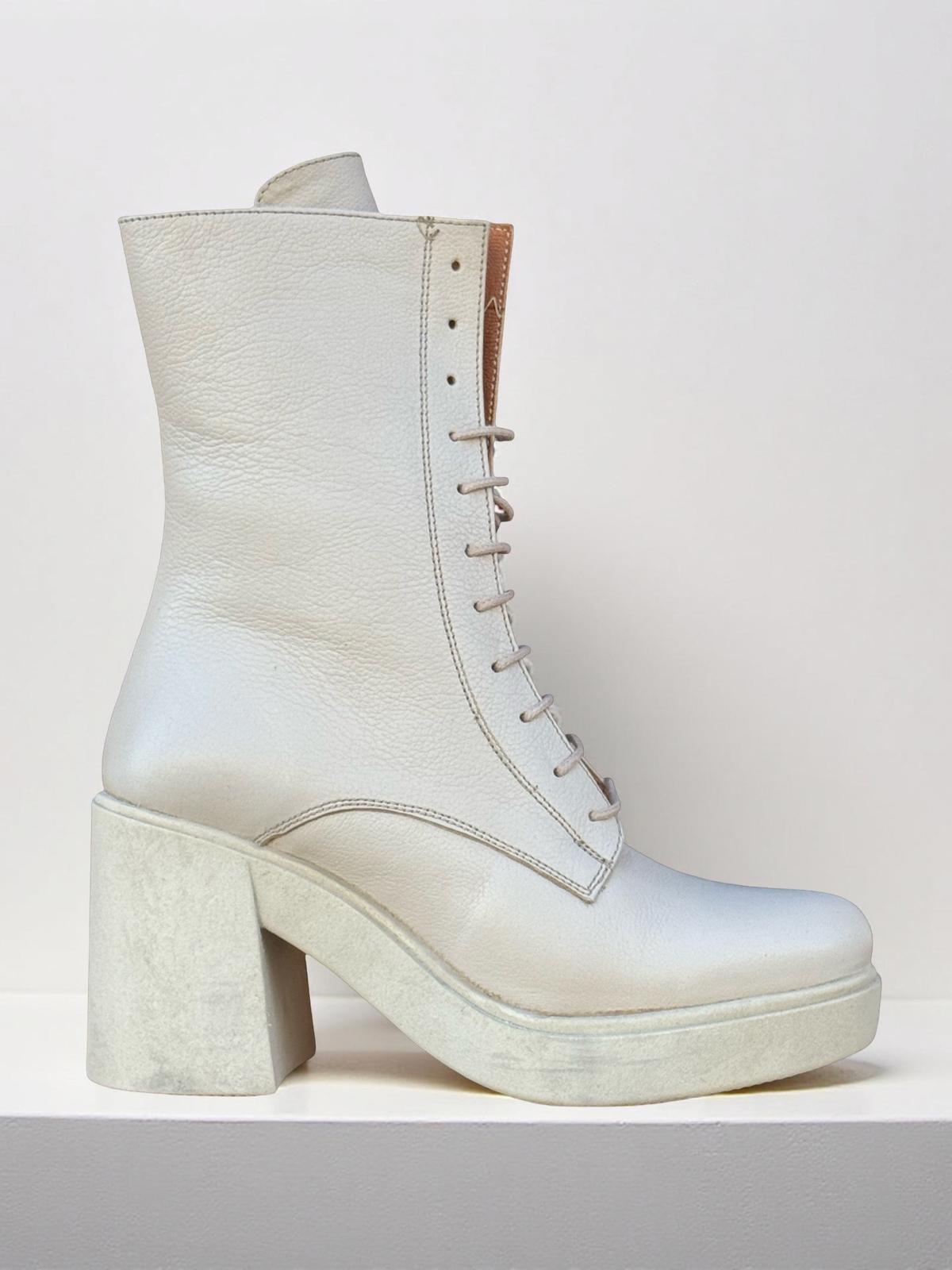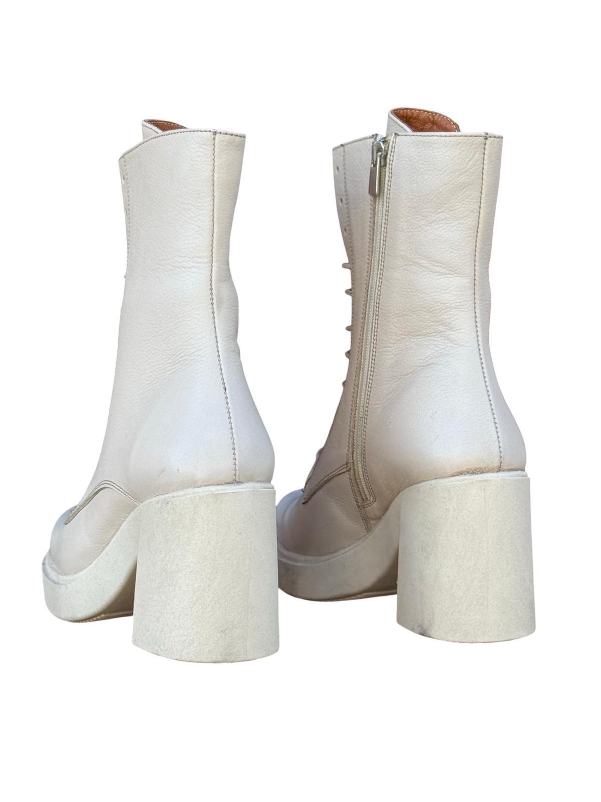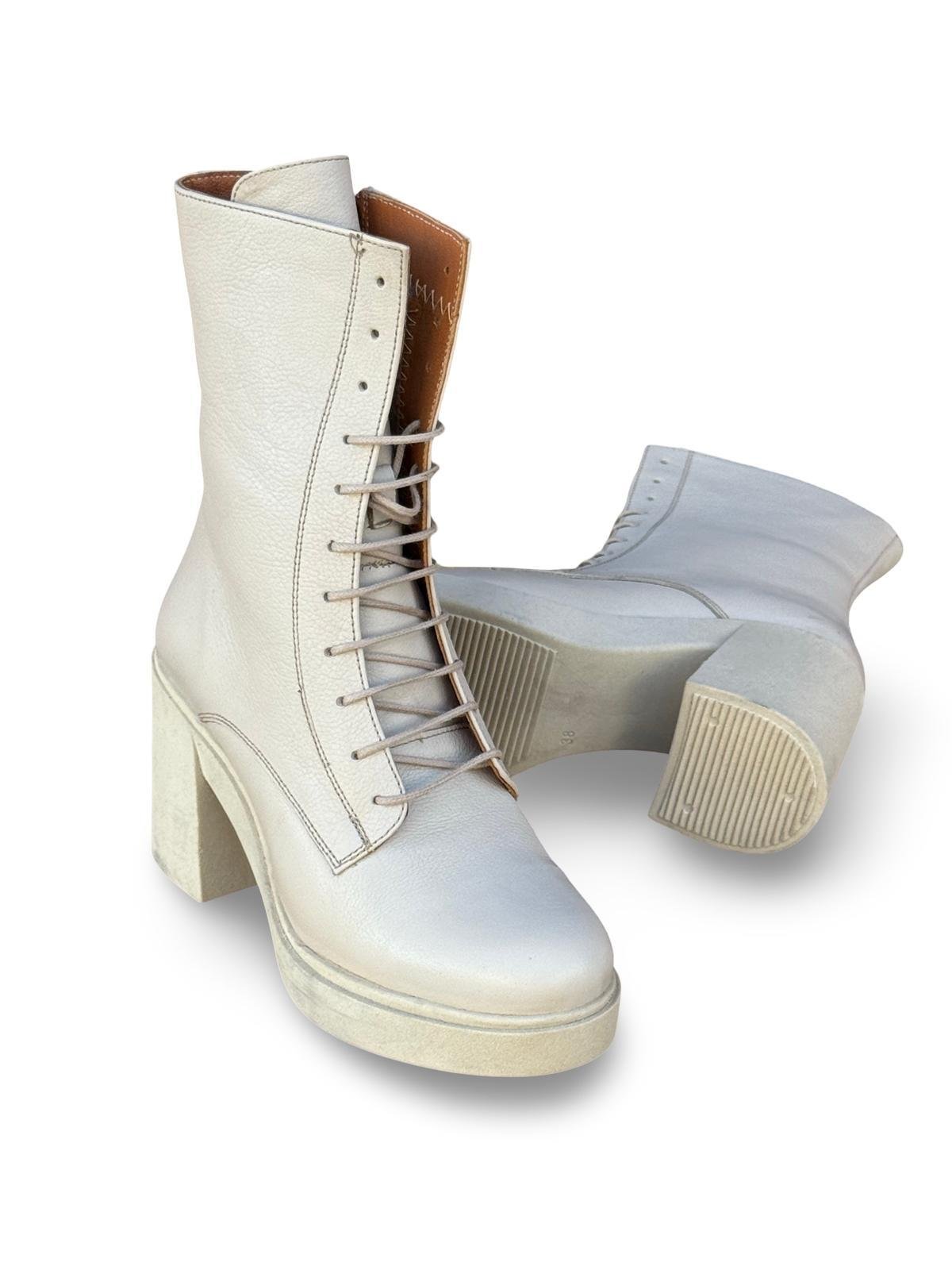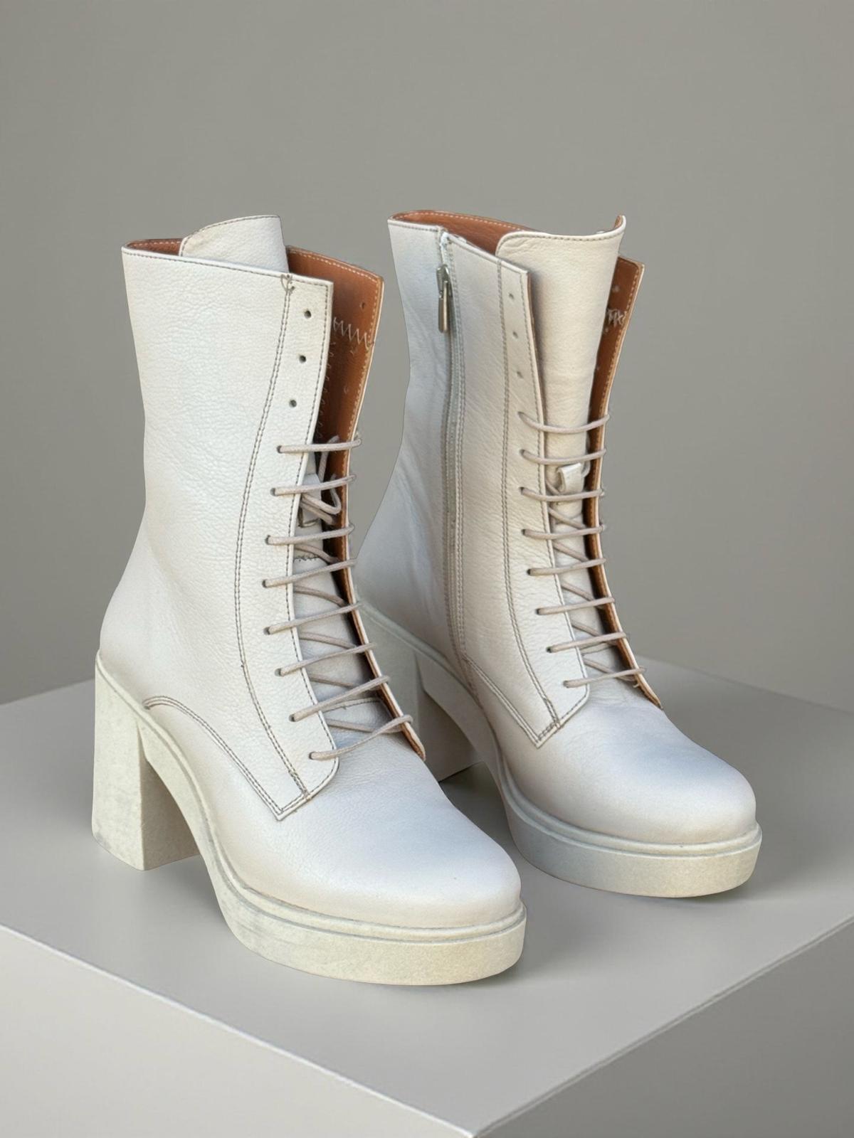 C.Black 83600 Hakiki Deri Kauçuk Taban Kadın Topuklu Postal Bot Bej