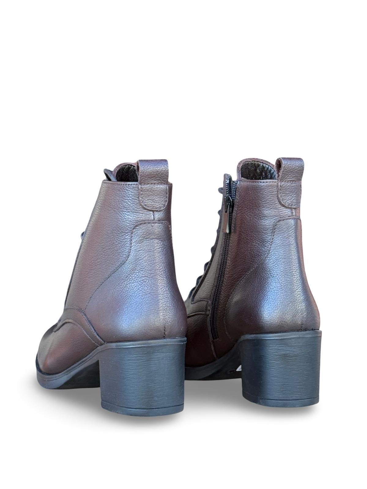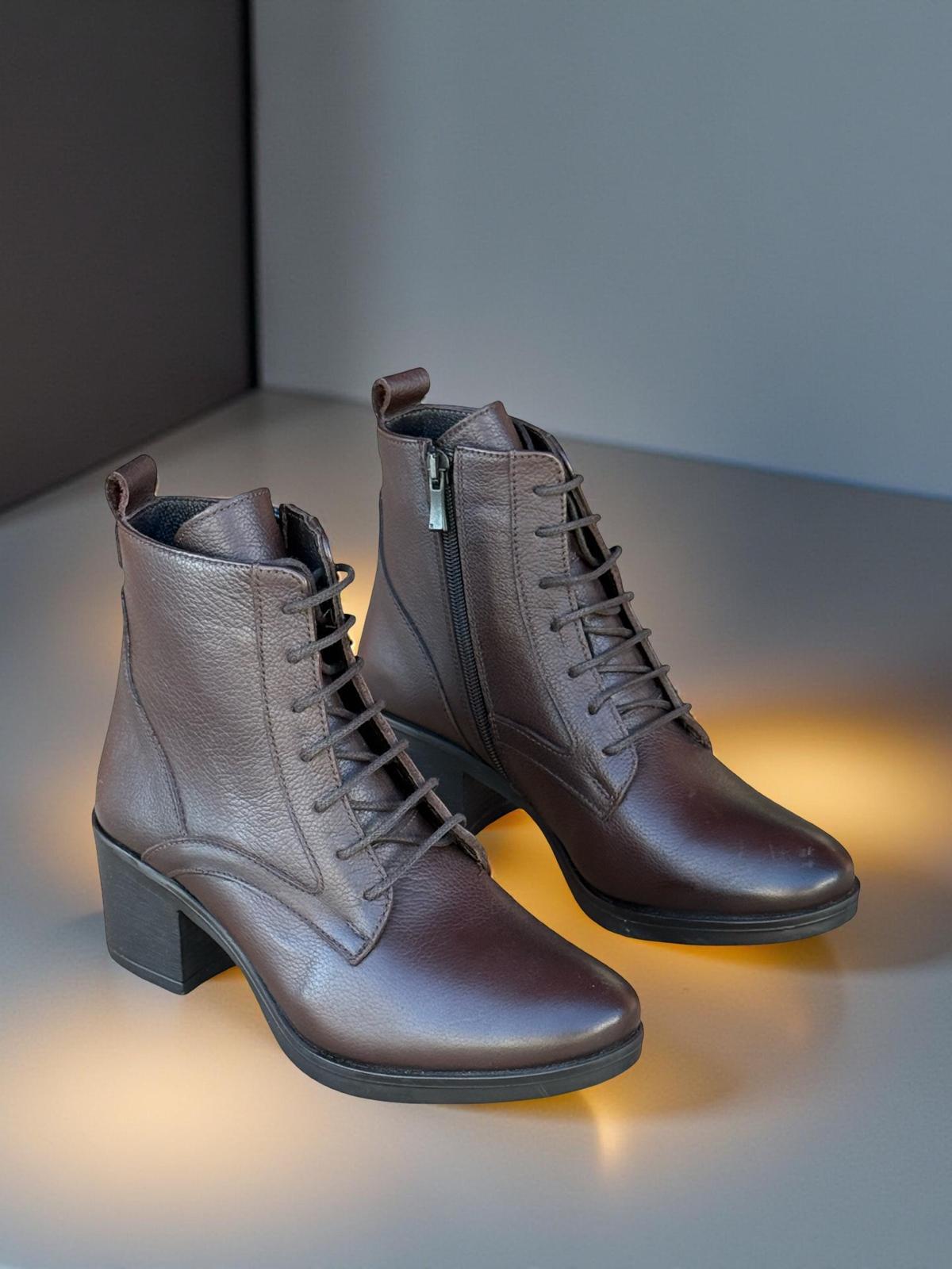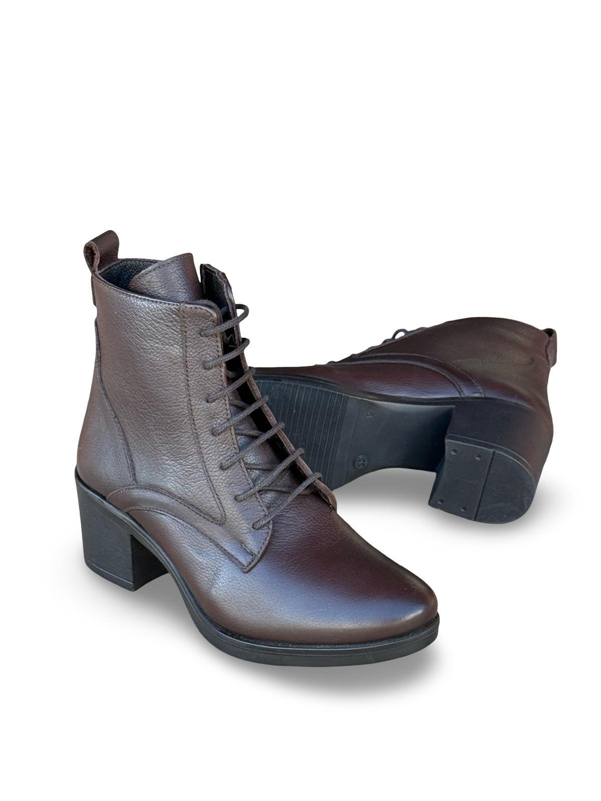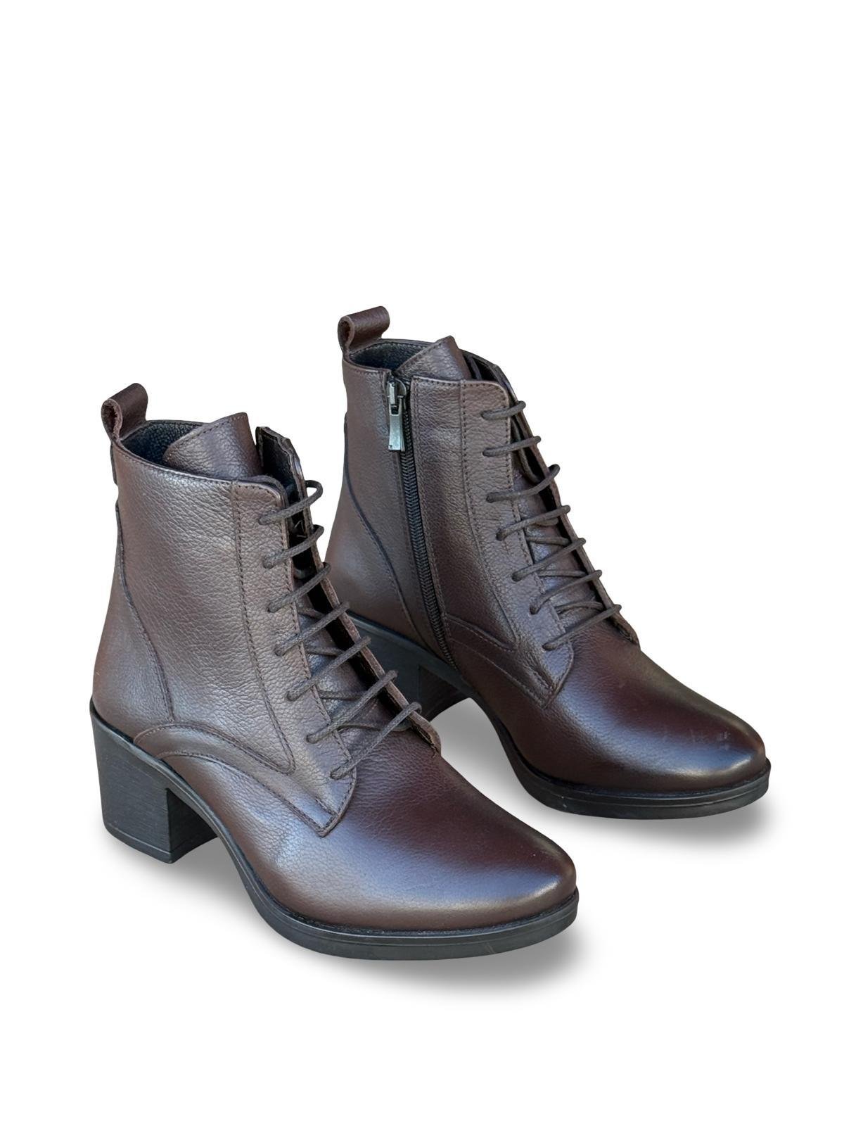 C.Black 92161 Hakiki Deri Kauçuk Taban Topuklu Kadın Postal Bot Kahve