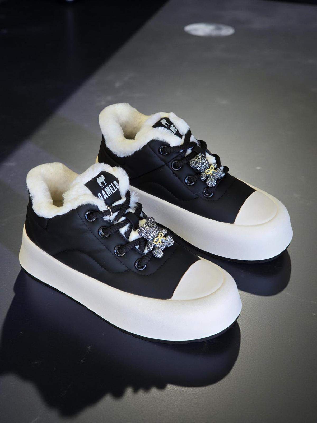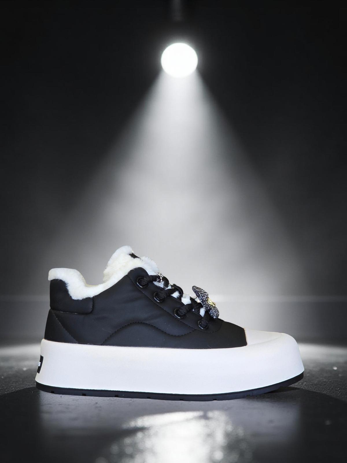 GML Chızy Kürklü Kadın Bilekte Bot Siyah Beyaz