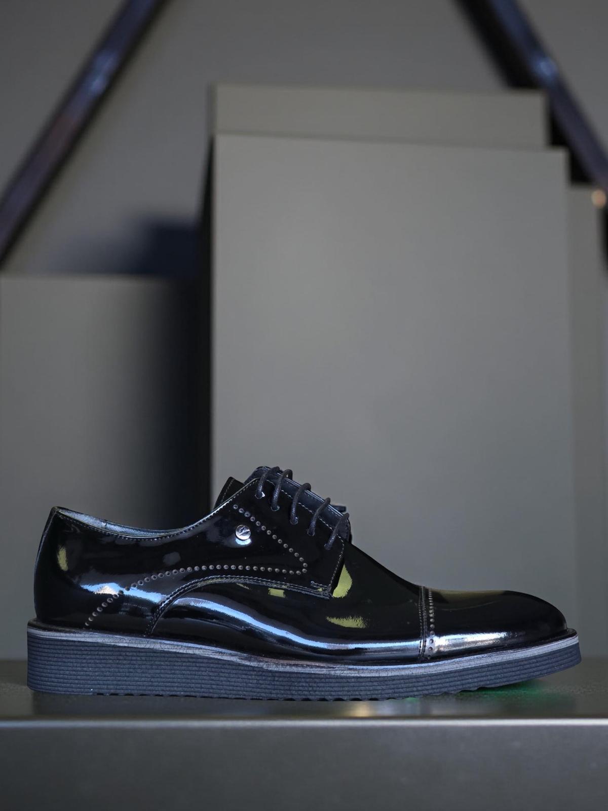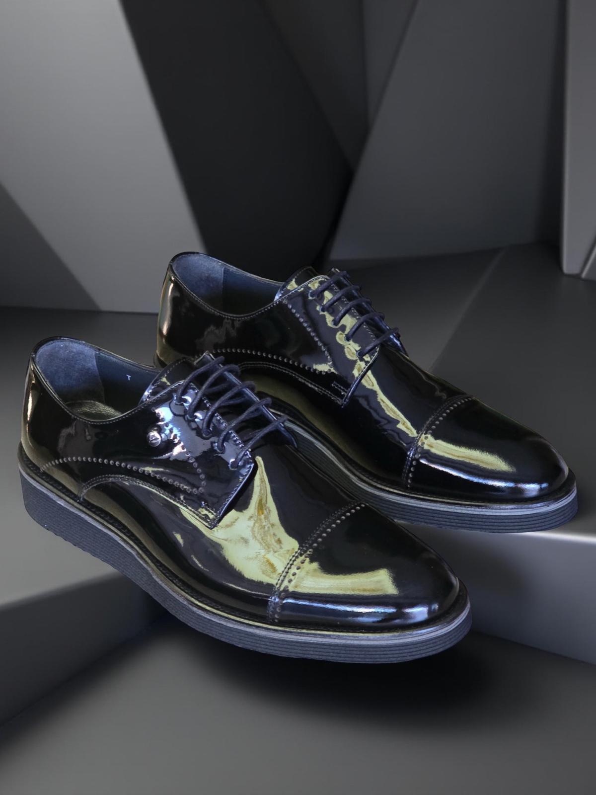 Yalınayak F2928 Eva Taban Klasik Erkek Ayakkabı Siyah Rugan