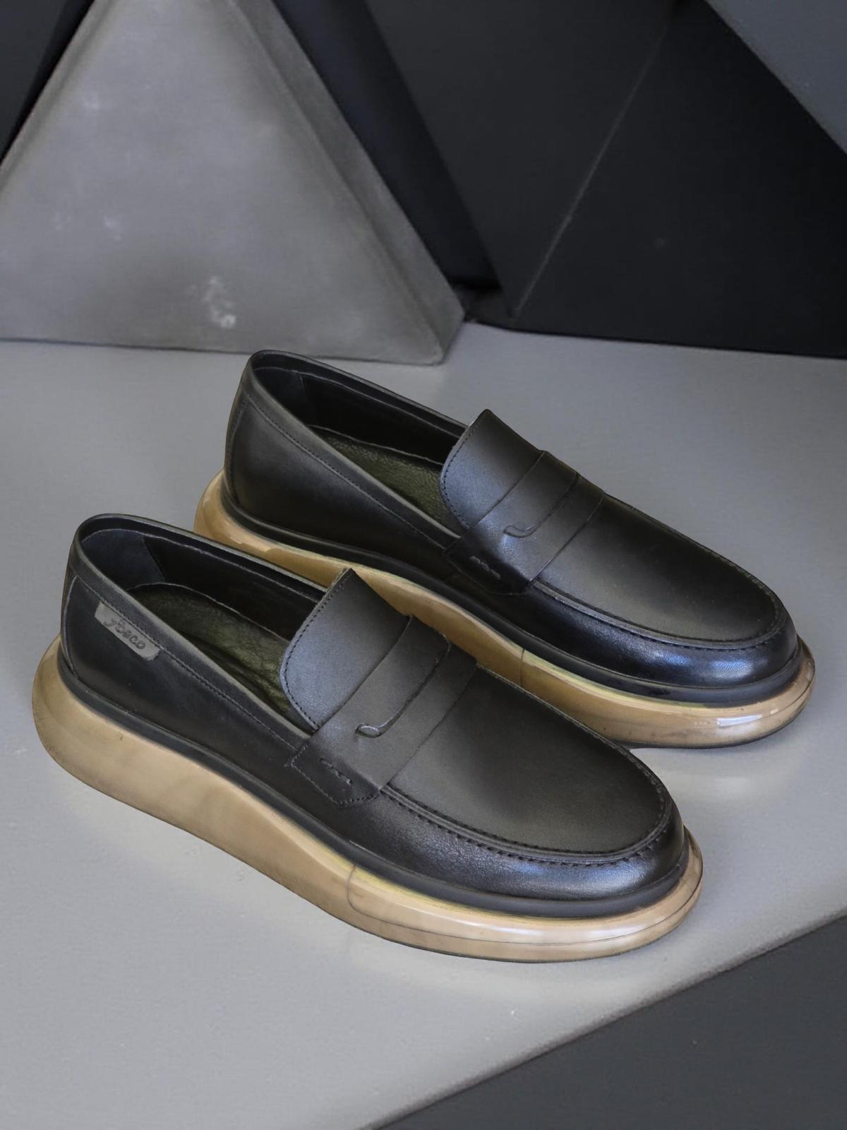 Yalınayak F9837 Hakiki Deri Erkek Şeffaf Tabanlı Babet Siyah