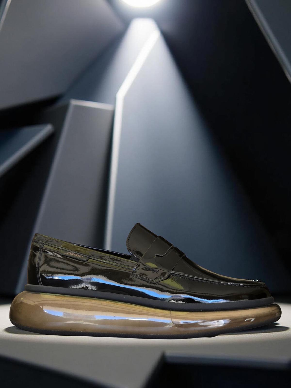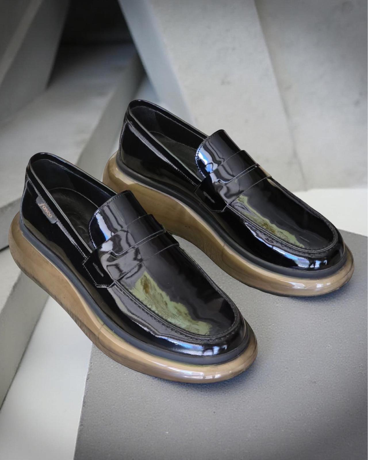Yalınayak F9837 Hakiki Deri Erkek Şeffaf Tabanlı Babet Siyah Rugan