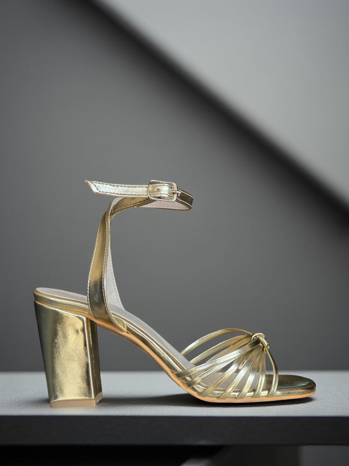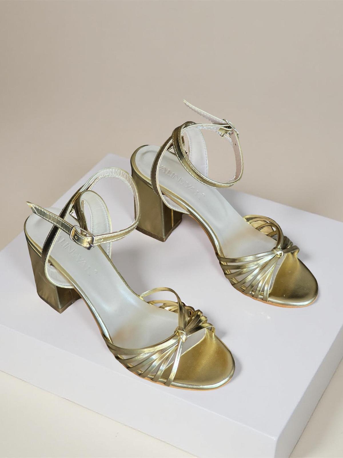 Yalınayak Mrs3041 Bantlı Kadın Topuklu Ayakkabı Gold