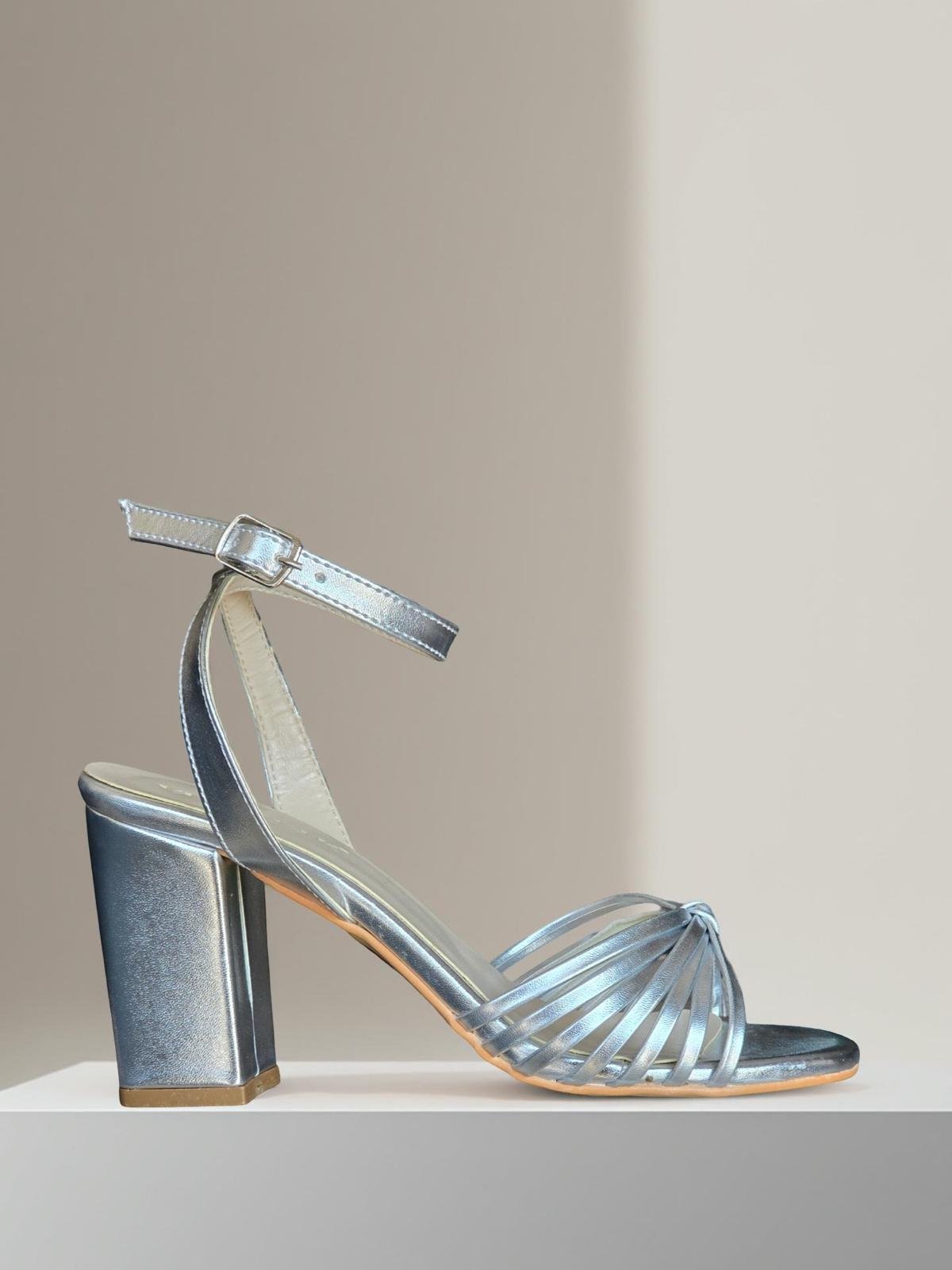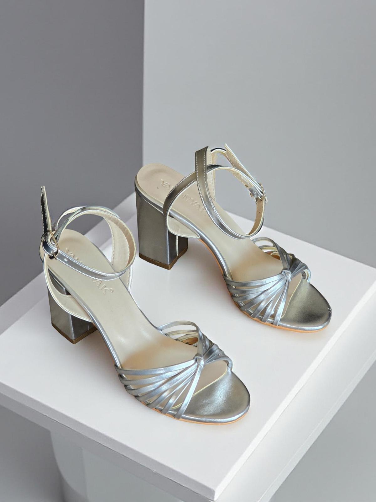 Yalınayak Mrs3041 Bantlı Kadın Topuklu Ayakkabı Gümüş