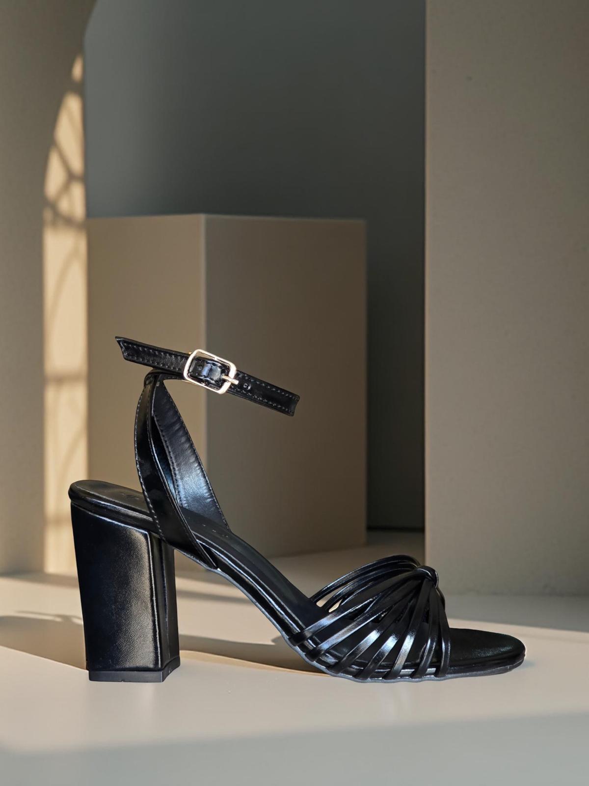 Yalınayak Mrs3041 Bantlı Kadın Topuklu Ayakkabı Siyah
